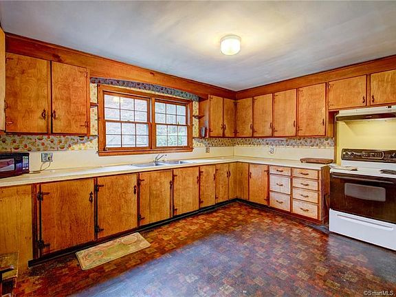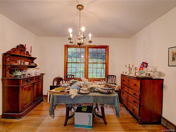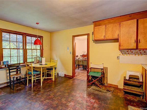 Excellent investment opportunity! Affordable Cape set on 3.45 private acres of land - easily convert this home into a stunning transformation! Offering a surprisingly spacious and open floorplan on the main floor, with a sun-filled great room equipped with hardwood flooring, wood stove and built-ins. Eat-in kitchen includes plenty of cabinet space; enjoy a separate formal dining room for hosting guests! Main floor also includes a full bath and 2 large bedrooms, one with a private half bath. Plus an additional room for a den or home office! 2nd floor has plumbing for another full bath and is ready to be finished off to also add 2 more large bedrooms. Wood stove on main floor provides significant savings on heating costs. Situated on a level lot with a 2-car attached garage. Convenient to Rt. 8 and just a 10-min drive to Litchfield or Burlington.