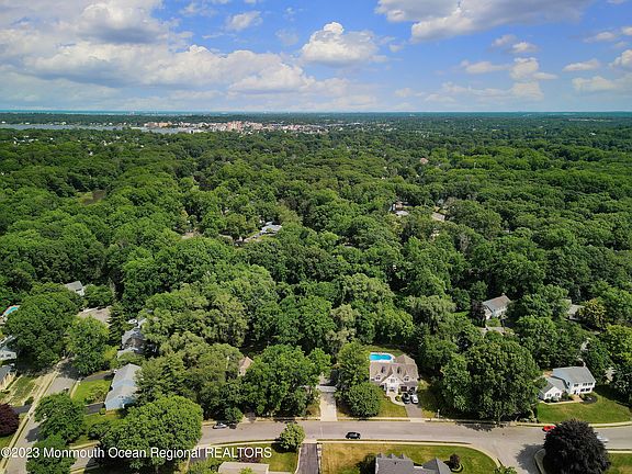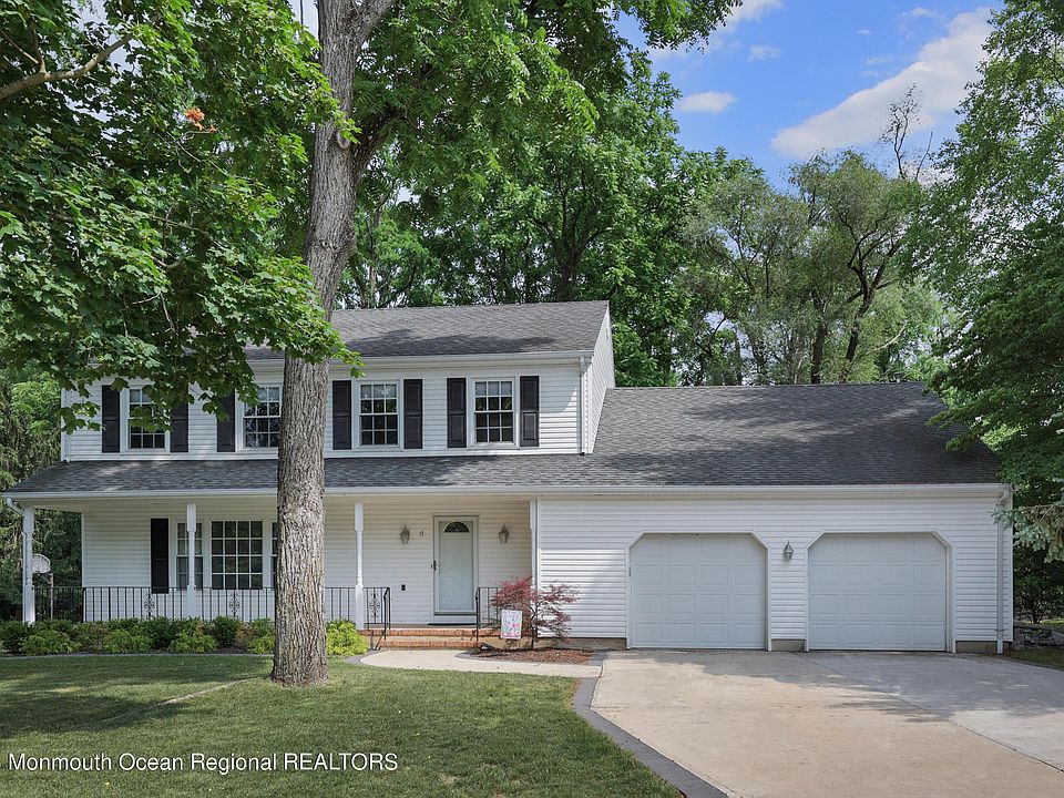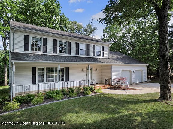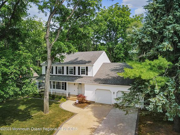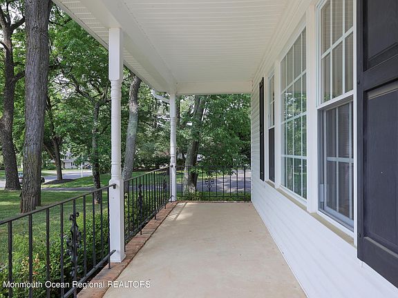 THE SEARCH IS OVER! Lovingly maintained and expanded 4 bedroom, 2.5 bathroom Colonial on parklike property with a rocking chair front porch in one of River Plaza nicest neighborhoods. Enter the spacious foyer with slate flooring and be led to the spacious formal living room with hardwood floors and continue to the large dining room. The eat-in kitchen offers maple cabinets and stainless steel appliances and opens to the vaulted sunroom with walls of windows and hot tub. The family room offers a wood burning fireplace and two skylights. The second floor has 4 bedrooms & a full bathroom, with the primary bedroom having a renovated bathroom, there is also an unfinished attic space that can be finished for extra living space. The finished basement offers an entertainment space, storage and laundry room. Outdoors has lush landscaping, private grounds and oversized tree deck. Minutes to the train, downtown Red Bank, parks and dining!