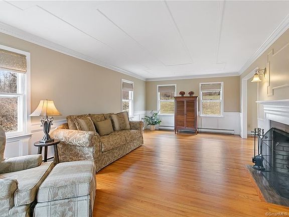 A rare find! Ideally sited in a quiet, desirable neighborhood, this elegant four-bedroom colonial boasts a modern, functional floor plan perfect for entertaining. The open and airy main floor features a spacious, sun-drenched, two-entrance living room with molding details and a wood burning fireplace. The living room leads into a warm, inviting family room with sunlit picture window, separate wood burning fireplace, and sliders that open to a gracious three-season room (not included in sq. ft) and adjoining deck overlooking the private backyard. An updated kitchen (2021) features new granite countertops, new SS appliances, and a separate breakfast nook with expansive windows, all leading into a large open formal dining room. Hardwood floors, tiling, fresh paint, and a full bath compliment the main floor. The upper level includes a large master bedroom suite with hardwood floors, mountain views, and full en suite bath, as well as three additional bedrooms (hardwood under carpets) and full bath. The roomy lower level is fully finished with new carpeting. Extensive updates and improvements for this meticulously maintained home are detailed in the separate "Improvement List." Ideal location in the heart of Brookfield Center, in one of the most sought-after neighborhoods in Brookfield--Viva Farms! Enjoy block parties with your neighbors and prepare to jog, bike, or walk your dog through these serene streets. Owner Agent.