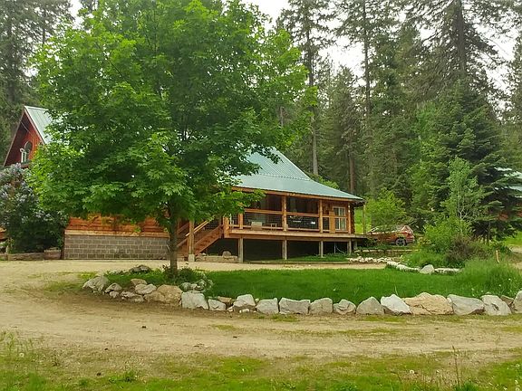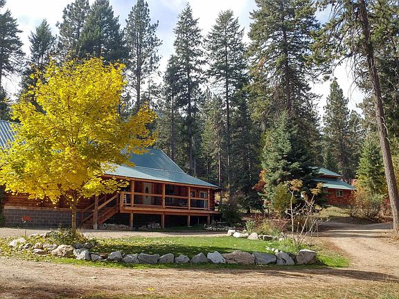 Authentic Log Cabin In the Woods w/River Rock Accents Around Comfy Wood Stove. This 4 bed, 3 bth home has extra storage rooms, brand new mini splits for additional heating and cooling, office space, a pantry, lg windows, open floor plan, high ceilings, & private master ensuite. It is ready for someone to make it their own. Sold AS IS by a motivated seller. Plank flooring is 3 yrs old, crawl space is over 3' tall, woodshed holds 10 cords of wood & the lean-to barn is ready for horses. There is a circular drive way & fenced raised bed garden space w/producing fruit trees, terraced flower gardens below the deck & an auto sprinkler system. The 32x30 shop w/drive thru 12x12 doors and lean-to storage is wired but awaiting a meter hookup. This Log Cabin would make an excellent family home or weekend getaway!!