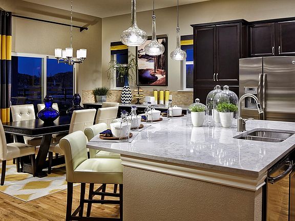 Ready for Immediate move-in! This gorgeous ranch style home features a spacious master suite with coffered ceiling and crown molding, spa inspired master bath including make-up vanity, frameless shower door, designer tiles and dual walk-in closets. The bright and open great room is located off the large kitchen with a massive center island, stainless steel appliances, stacked Java cherry cabinets with extended nook cabinets, soft close doors and drawers and slab granite countertops. This spectacular home also features an L shaped covered patio off the nook and living room and mountain contemporary gas fireplace with stone surround. The convenient study and private guest suite offer additional living space along with the full unfinished basement. Special details included extended oak hardwood floors, 8 ft doors throughout the main floor, crown molding in the study and cased windows throughout, wrought iron balusters and gas line to the back patio.