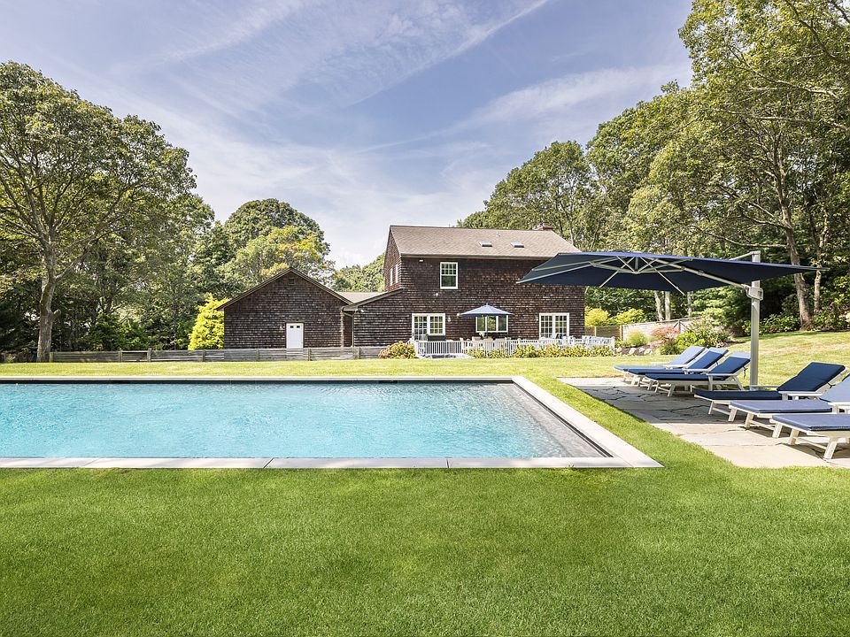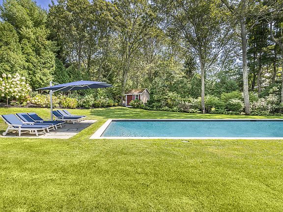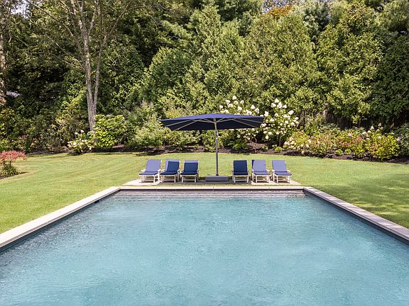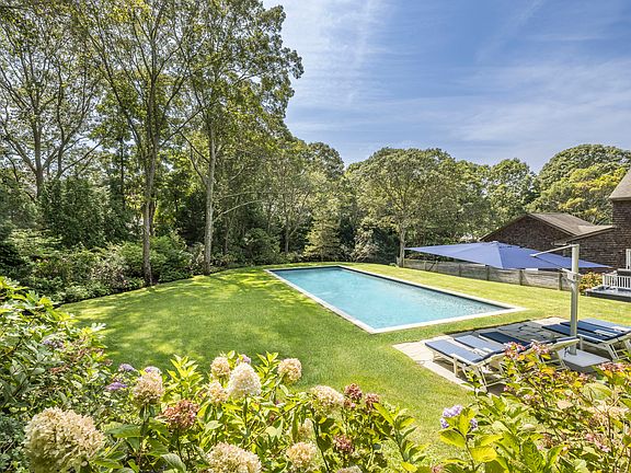The truly unique lot in a prime location is sitting on a full acre with a scenic park like setting located on a private cul-de-sac with just a few homes and no through traffic. Just 1 mile to the famous American Hotel, this updated 4-bedroom, 2.5 bathroom home boasts designer furnishings with local flair throughout, offering guests all the comforts expected of an upscale vacation home. A classic front porch welcomes you into immaculate living areas; a living room with fireplace can be closed off with glass pocket doors and also opens to a rear deck. The chef's kitchen features Viking appliances an island with sliding glass doors open to the deck from a breakfast nook and the dining room. A powder room, an oversized mudroom with washer, dryer, closet space and a large attached 2-car garage are also on this level. The second floor has master suite with a wood burning fireplace, there are two additional guest bedrooms and a bathroom on the second floor.The lower level of 800 Sq Ft. is finished with a queen size bed. With an exceptional view from each of the interior windows, the backyard has all the bells and whistles for summer fun with an oversized gunite heated 22 x 52 pool, hot tub, fire pit, large green grass, and a deck with plenty of space in a natural setting. Conveniently located less than a 1-mile walk to the Sag Harbor shops and eateries as well as the nearby bay beaches make for the perfect stay. This home is pet friendly on case by case basis. Book your Hamptons vacation today!