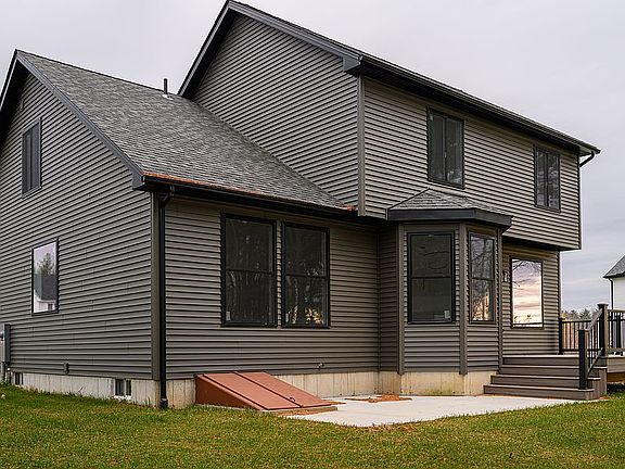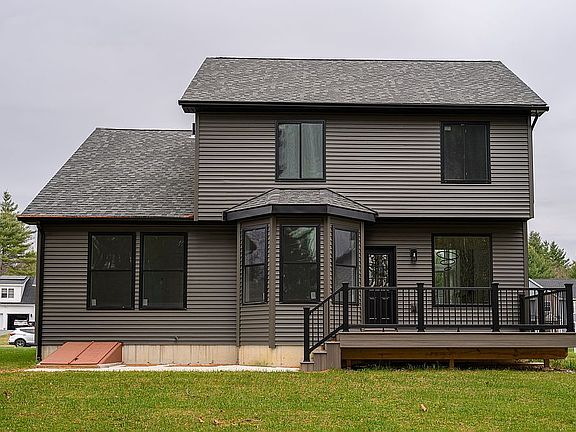 The private backyard offers a composite deck and concrete patio perfect for hosting outdoors.