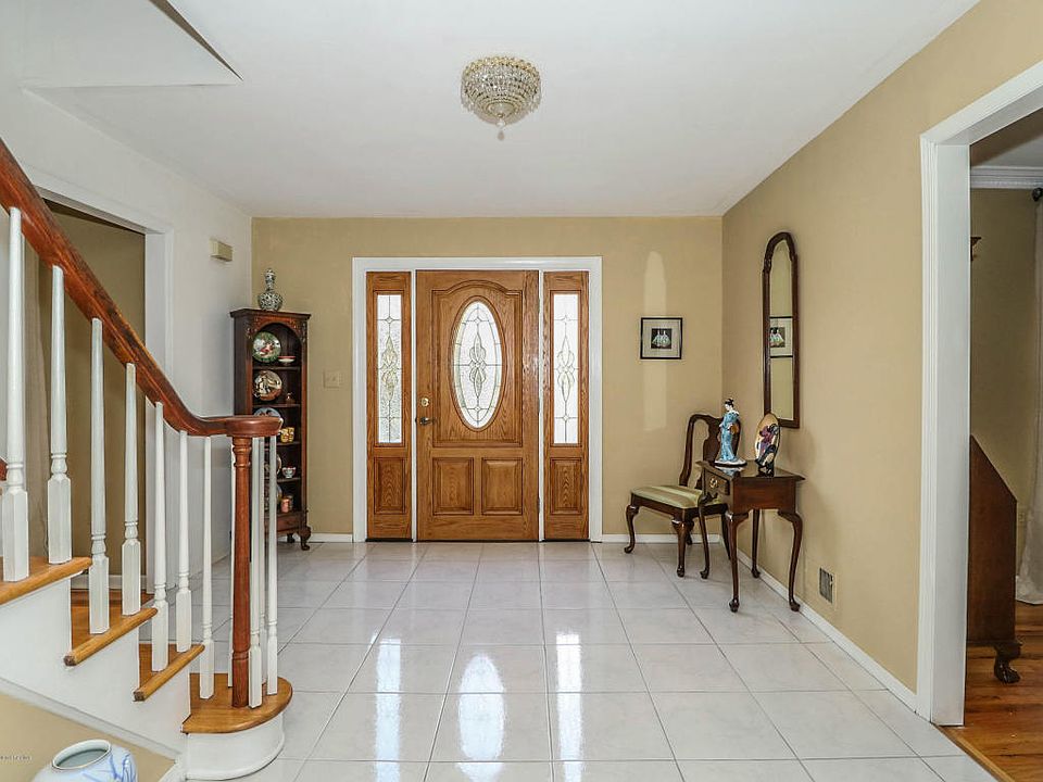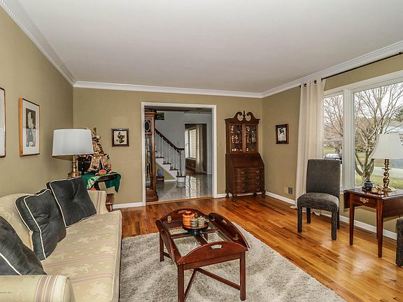 This center hall colonial with 5 bedrooms, 2.5 baths is situated on over 1.5 acres of beautiful park like property. Enter through the large, open foyer with ceramic tile floor that lead to the updated kitchen with center island and new appliances. Bright living room, formal dining room, and family room with hardwood floor. Large closet in master bedroom, updated master bath and second bath. 2 car garage and underground sprinklers. Brand new air conditioner and brand new water heater tank.