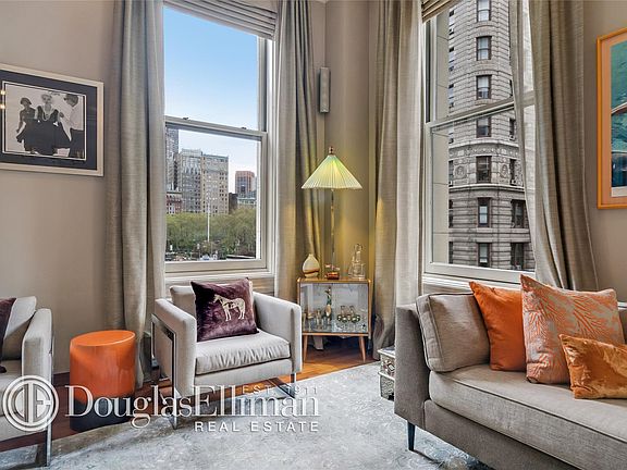 Enjoy an entire private floor of sprawling loft space in this spacious 2,736 sq ft apartment in the historic "Sohmer Piano Building" on lower Fifth Avenue. Facing both North and East, one can enjoy 18 over-sized oak windows towards Madison Square Park and the legendary Flatiron Building. The chefs kitchen boasts top-of-the-line stainless steel appliances and Cornufe' range and opens up on to a generous living room and dining area with beautiful teak floors, 13 foot ceilings and the original pre-war moldings. Currently, the space is configured as a 3 bedroom and home office but can easily be transformed into a 4 bedroom layout. The master suite offers a 6 foot luxurious soaking tub and Japanese walk-in shower. Adjacent to the master bedroom, is an oversized, double walk-in closet which can also be converted into an exercise room or office. Additional features include a washer/dryer, stereo system throughout the residence, excellent lighting, soundproof double-pane city windows, large closets & abundant storage (with additional basement storage included).
