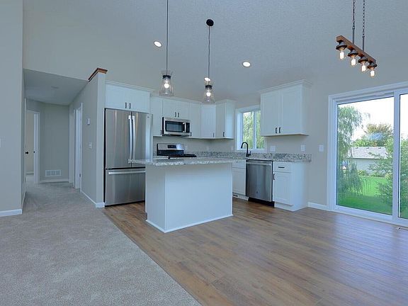 Quality shows through on this rare new construction home available in Winsted. Your first steps show a large foyer offering a wide staircase. The main floor hosts vaulted ceilings, living & dining room spaces and a kitchen island. The kitchen offers a gas range, tall cabinets, granite counters and stainless GE appliances. Both bedrooms have walk in closest with a double vanity sink in the primary suite. The lower level's family room has room for any event and walks out to the open back yard. A third and fourth bedroom is also offered along with a 3/4 bathroom and laundry in the utility room. Other features of the home include large windows, marble top vanities and laminate wood flooring. The entire yard has sod and the front is landscaped. Make this yours!
