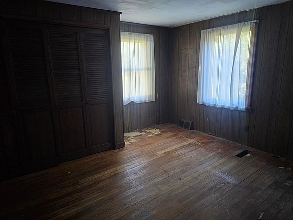 Home is a two bedroom one bath. Livingroom and kitchen on main floor. Unfinished basement. Shed next to house. Medium tree coverage, nice corner lot.