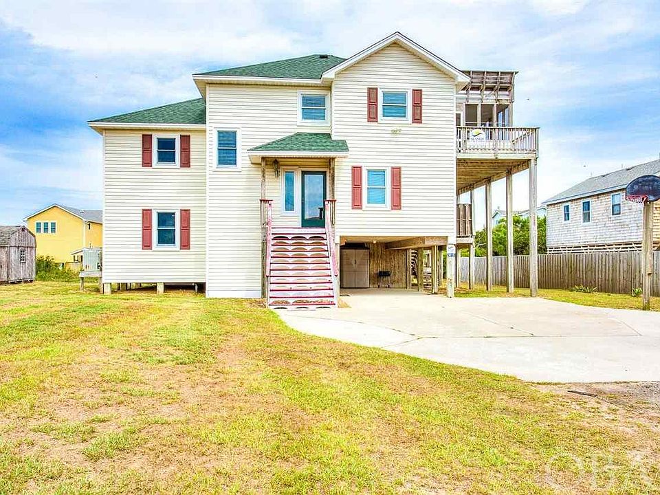 Morning View is a 5 bedroom vacation home with gorgeous ocean views in Southern Shores on the OBX. Multiple decks on every level including a roof top deck and screened in porch to relax and enjoy the ocean breeze and stunning views. Ideal location with quick and easy beach access to the north (Dolphin Run) or the south (Trout Run) of the home with beach parking for Southern Shores pass holders. 170 Duck Rd is a large property with no shortage of space for outdoor activities. The large yard offers plenty of room for volleyball, basketball, horseshoes, and plenty of parking. The indoor game room is spacious as well with room for pool table and foosball. New roof in 2019 and fresh paint throughout. More photos coming soon.