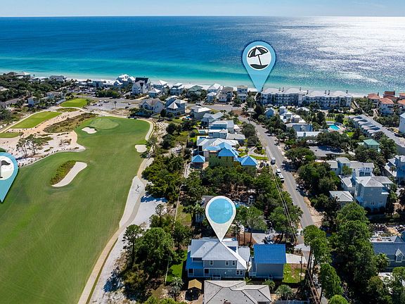 Welcome to one of the most desirable non-HOA communities on 30A, where this custom-built home offers an extraordinary blend of luxury, comfort, and prime location. The main house boasts 4 BDR plus a bunk room, heated/cooled storage room, 3 bathrooms , two inviting living areas, and two large porches overlooking Santa Rosa Beach Country Club. The gourmet kitchen is equipped with high-end appliances, a generous breakfast bar, and an elegant dining area. For added versatility, the property includes a separate lockout carriage house above the oversized two-car garage. Complete with 1 bedroom, 1 bathroom, a full kitchen, living area, and a bunk room. This home is designed for seamless indoor-outdoor coastal living in 30a