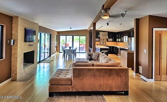 There is no other property like this in all of Prescott! Imagine living in your own private, nature sanctuary atop a hill crest overlooking Thumb Butte, Granite Mtn, and Natl Forest with an arroyo of open land below. This eco-friendly home has been expertly renovated by the owner/builder as his private residence, sparing no expense. The upper level expansive main floor captures views from every room and features expansive great room w/bamboo floors, quartz stacked stone fireplace, family friendly dining area, + access to dual entertainment decks. Kitchen has custom cabinetry, stainless steel appl, multi-level lighting, & island bar with seating. Master & guest beds are on the upper main floor w/ 2 spa inspired baths. Lower level can be family room, office, or guest suite.Room for RV.