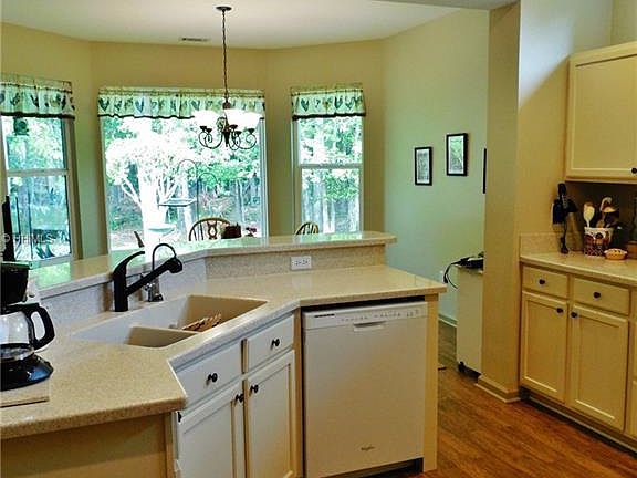A great Del Webb home on almost 1/4 acre.WOW...3rd car or Golf Cart 11.5'x17'garage.Wooded view in front and back yard. The Hamilton/Jefferson model has been updated since 2013:HVAC/Roof/2014.CAROLINA ROOM IS 9.5'X18'with huge windows overlooking patio and woods. 11 new thermal windows.Blt-in maple cabinets in den and greatroom.Screens on garages.3 baywindows.Laminate flooring in living areas.Smooth ceilings.Solid doors on den.Fantastic workshop in garages.Kitchen has corian, newer appliances,under cabinet lighting.Bedrms are carpeted.CarRm is tile.Laundry room features cabinets and shelving.