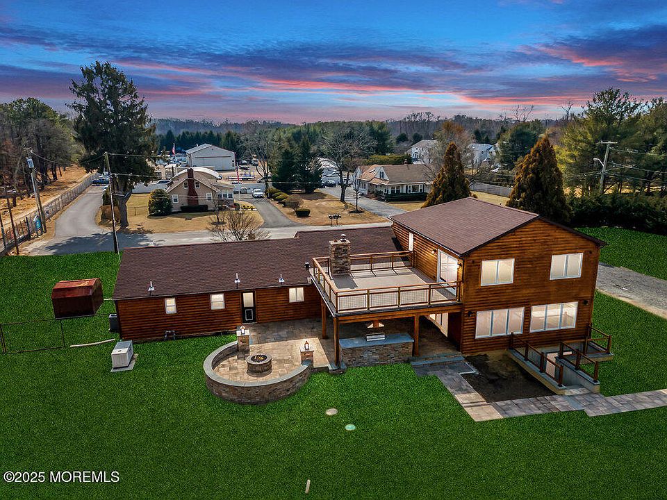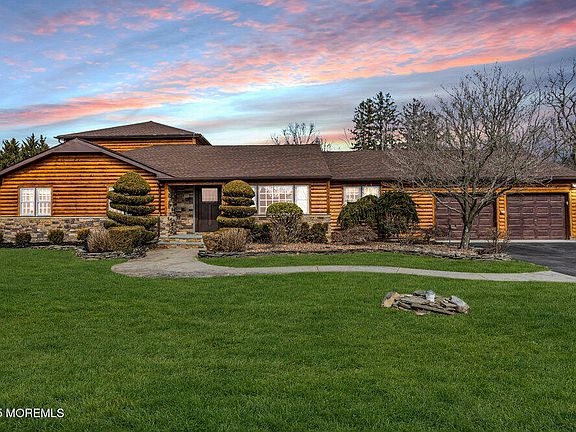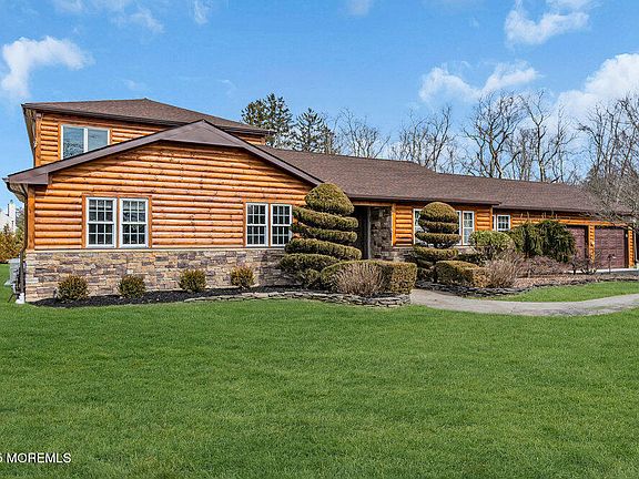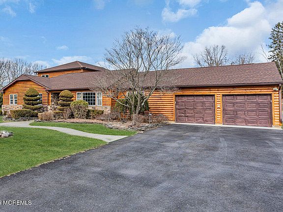 Welcome to a one-of-a-kind custom estate, where luxury blends seamlessly with rustic elegance. This 3,300 sq. ft., 4-bedroom, 3 full bathroom masterpiece boasts a stunning log cabin facade, offering warmth and character from the moment you arrive. Inside, the chef's kitchen is an absolute dream, with custom wood cabinetry and 8' center island, concrete countertops, commercial-grade stainless appliances, a dedicated coffee bar, and a cozy wood-burning fireplace. The second-floor master suite is a true sanctuary. The bathroom features a spa-inspired steam shower, radiant heated floors, bamboo soaking tub and his and her sinks, while the master bedroom showcases 2 walk-in closets and a private walkout observation deck that overlooks the entire property.
