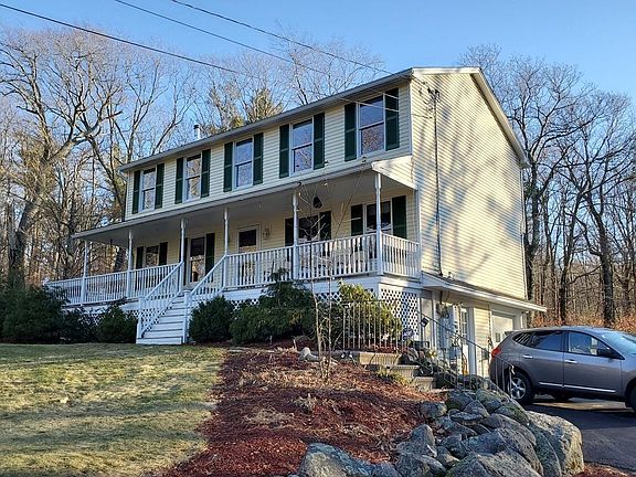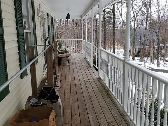 Private 3-BR/2.5 bath - 2-Story Colonial on 2.5 acres woods & open land across from Baldwin Hill Conservation Area. Farmer's porch with wrap around deck.. Paved driveway;architectural shingle roofing.Two well built sheds, one is hard-wired w/emergency generator set up for house. Heated garage under home could be expanded to two vehicles.Skylights in both full baths w/automatic weather sensors. Master bath has jetted tub. Family room has wood stove. First floor laundry access with half bath. Note: Solar panel system has loan balance but negotiable with seller. Home is perfect for country living on a dead end street yet close to commuter access. Photos show current and "Spring" landscaping.