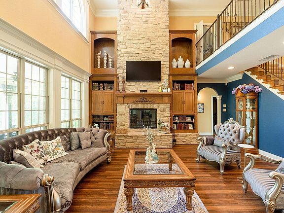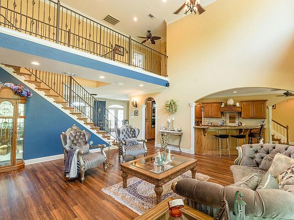 Beautiful Custom Home at end of quiet culdesac, 5/4, office, dressing closet, tons of storage, sprinkler system, large porches, open floor plan, 20' ceilings in Family Room, large dining room, solid oak cabinets, granite tops, iron railing & cat walk, two staircases, woodburning FP, Gas FP, new flooring and appliances, huge game room and big media room