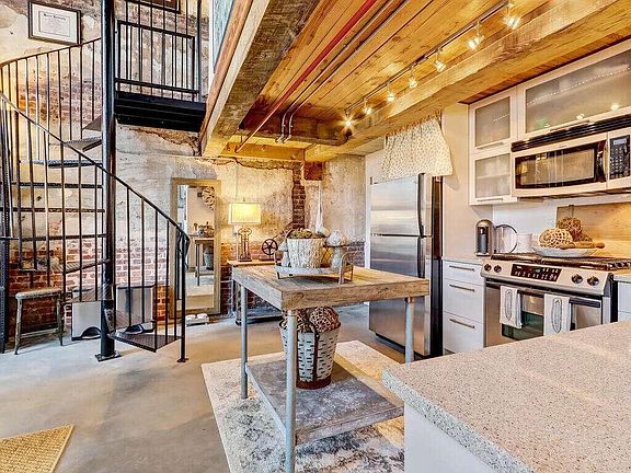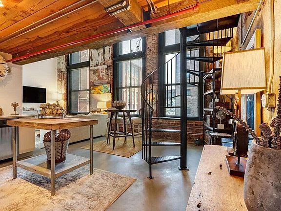 Absolutely stunning 1 bedroom, 1 bathroom home in the D building at The Stacks! From the moment you walk into this end unit you will appreciate all the natural light, soaring ceilings and a wall of windows. Enjoy the amazing view of the pool and newly renovated courtyard featuring artificial turf, a dog play area and open air seating with a fireplace. This home oozes with architectural character which includes tons of original exposed beans and brick as well as concrete floors that were stripped and epoxy sealed. The kitchen and bathroom have been renovated, new carpet installed, and a custom barn door added to the bathroom. The bedroom is spacious and includes a large walk-in closet. This is Intown loft living at its finest!! The amenities include newly renovated common courtyard spaces and pool area (highly coveted!) in addition to 2 rooftop decks and updated fitness center in the bottom of your building! Should you decide to venture out of The Stacks, you will love quick accessibility to the bars/restaurants on Carrol Street, Little's Market, the Beltline, Krog Street Market and all the new development on Memorial Drive. Living at The Stacks is truly a one-of-a-kind lifestyle, and this home is equally as special!!