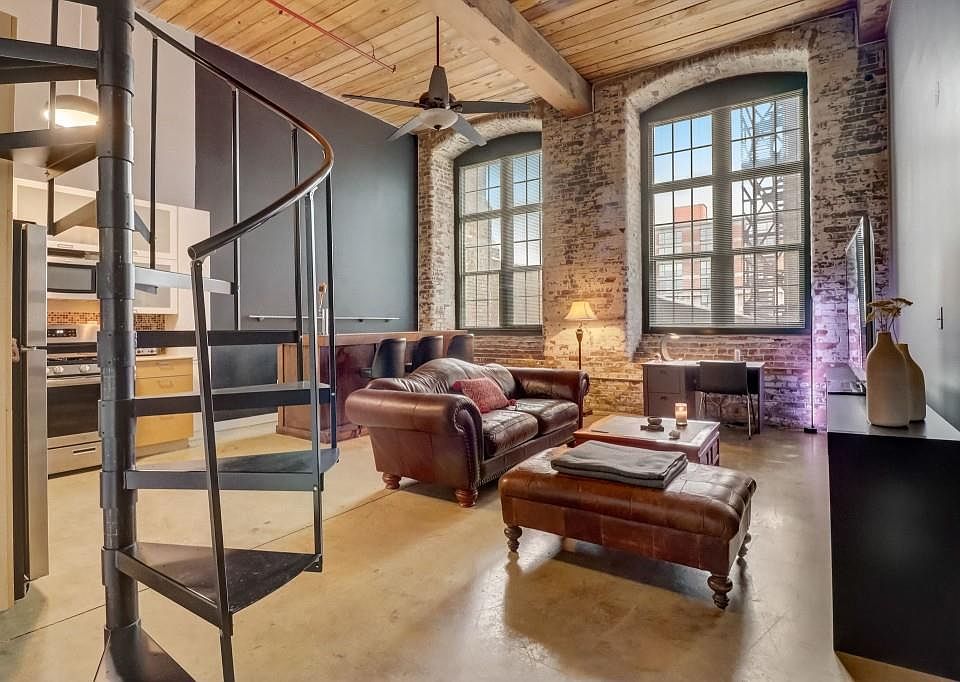 Priced improvement of $30K!! Fabulous true Loft in the Historic Cottonmill Lofts (the Stacks) in bustling Cabbagetown. This 2 bedroom has Concrete floors, spiral staircase that leads to a second floor bedroom. All brick walls and wall of windows. Oversized laundry, big bathroom and open concept from living room to Kitchen. Bright and cheery, plenty of storage and a beautiful community pool and gym. Complex also has a rooftop terrace with incredible views of the city. Walk out the back gate to an assortment of restaurants on Carol Street. Newly redeveloped Memorial which hosts everything from groceries to Ace Hardware and plenty of shopping and restaurants. The biggest attraction is The Atlanta Beltline with access minutes away on foot. Plenty of secured guest parking. All furniture is available including kegorated/refrigerated bar. Space to easily add a second floor bathroom.