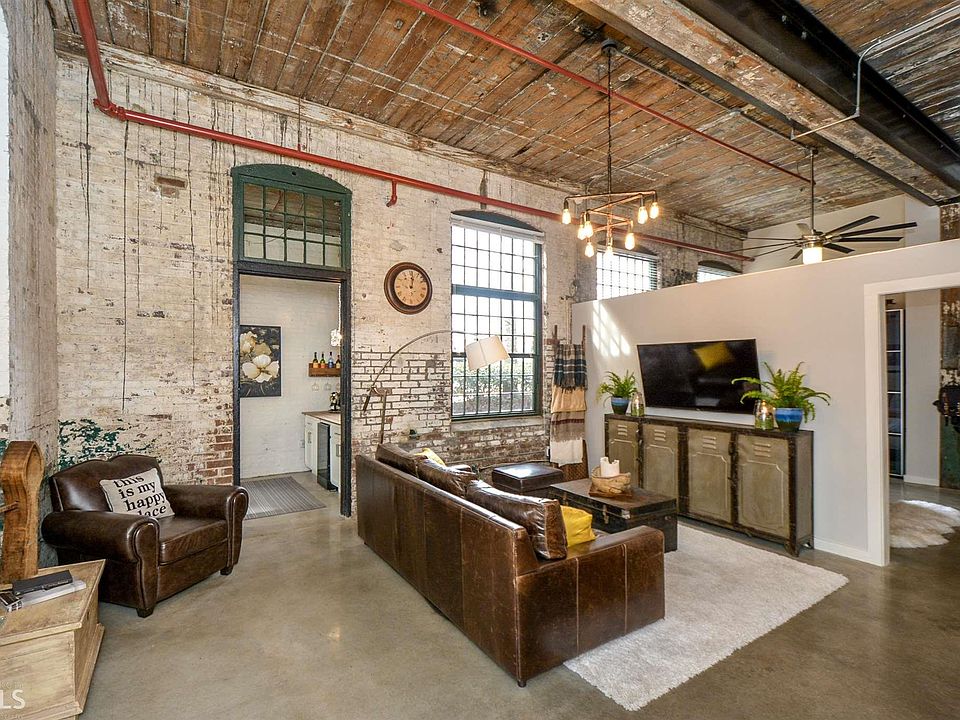 Desired one-level loft at the Stacks of Fulton Cotton Mill Condominiums! Unique Garden-style end unit affords easy access and great ground-level living. Awesome exposed brick walls, beamed ceilings and high-end ceiling fan. Updated lighting throughout. Updated dining area includes fresh paint and custom built bar. Lounge in the beautiful courtyard or deck/pool area. High-end fitness center complete with a tanning bed. Check out the rooftop deck and exercise room! Close proximity to popular Fetch Dog Park, Beltline & steps away from popular dining along Caroll St.