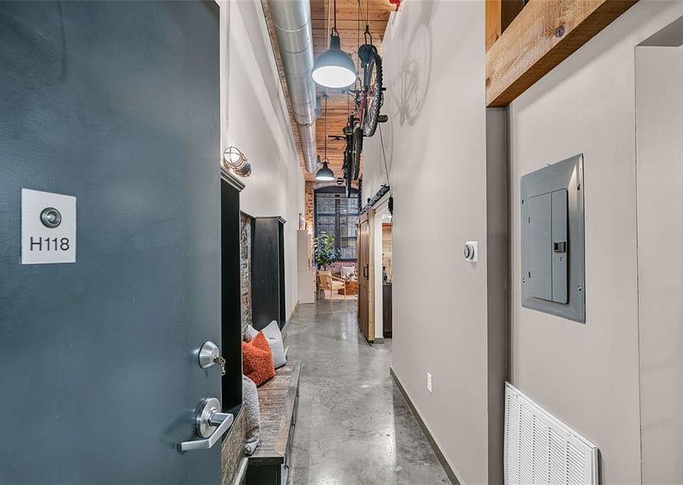 Check out the Soaring Ceilings, exposed brick, and private views, ground floor unit. Enjoy unmatched in-town living at the Stacks, Atlanta’s premier luxury loft residence. Private fitness center, recently refurbished Olympic-size swimming pool, multiple gas grills, new outdoor seating areas, and new plants. You are just a few steps from numerous restaurants and nightlife. The loft has concrete floors with an open floorplan with wood plank ceilings, and two very large windows. Entertain with ease in the spacious family room with fireplace and built-in shelf unit, and adjoining dining and den with a renovated white kitchen with new countertops, cabinets, subway tiles, and new stainless appliances with coffee/bar area under the modern straight stairs. Rest and Relax in the owner suite (main level), ensuite bathroom with double sink, with walk-in closet, and glass-enclosed shower. The second bedroom on the top level is also perfect for a home office, and a second full bathroom upstairs with a large walk-in closet and bonus storage room. Downstairs includes an in-unit laundry room (washer and dryer stay). This captivating condo is steps to the Beltline, Atlanta Dairies, Krog Street Market, more restaurants, shopping, The Fetch Dog Park, ATL MLK Historic Site, and MLK MARTA Station. The owner has installed a new kitchen, bathrooms, new hot water heater, The AC is 3 years old. Utility closets and both bedroom closets have upgrades. New upstairs flooring, Reserved gated parking space #401 plus additional rooftop parking deck.