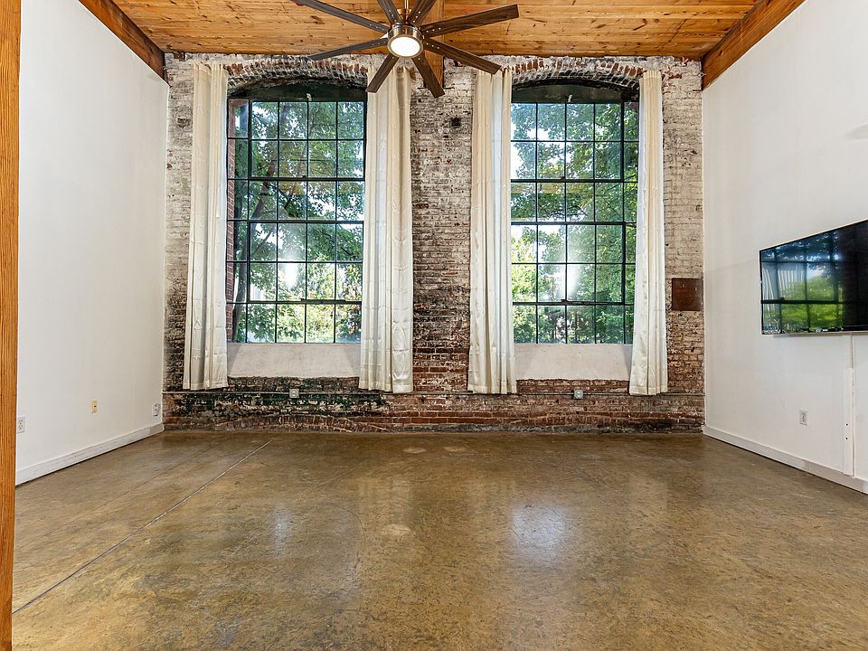 Welcome to the The Stacks in the heart of Cabbagetown! This light-filled second floor unit features giant arched windows, concrete floors, high ceilings with exposed beams and plenty more of the amazing original 1800's architectural detail. Kitchen includes gas stove and ample space to add a breakfast bar or kitchen island. The Stacks is truly a one-of-a-kind! Fully gated community with 24/7 security, stunning courtyards, Atlanta's most unique pool experience, an impressive 2,500 square foot gym and you are just steps from Carroll Street restaurants and bars, The Eastside Beltline, Krog Street, the Eastern and so much more!