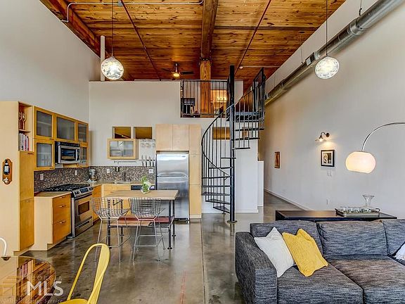 Top floor residence in Cabbagetown's historic The Stacks community. Sunlit loft boasting concrete floors, soaring oak ceilings, exposed brick, & custom Janke hand-blown glass lighting. Open kitchen w/modern cabinetry & stainless appliances. Spiral staircase leads to a lofted owners retreat. Ample storage w/walk-in closets & large separate laundry room. Easy access to rooftop terrace w/stunning views of Downtown. Coveted community w/gym, pool, courtyard, secured gated access & 2 deeded parking spots. Steps to the Beltline, shopping, restaurants & so much more. Intown living at its finest!