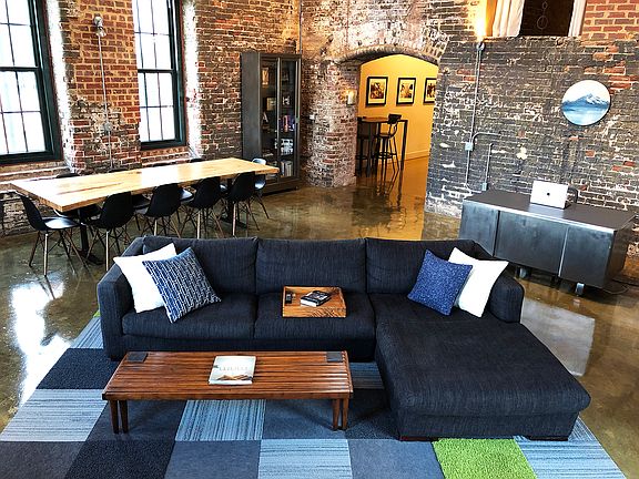 1550 square feet of luxury top floor penthouse loft with towering 70 foot ceiling in the main living area - 10 minute walk to Krog Street Market and the Atlanta Beltline. The Tower is a one-of-a-kind intown Atlanta loft with a beautiful mix of modern finishes, stunning architectural details, and expansive panoramic windows with 360-degree views of Atlanta. The loft sits atop the oldest standing building from the Fulton Bag & Cotton Mill, a historic property that dates back to the 1880s. This is definitely a one-of-a-kind loft with huge wow factor! See https://www.youtube.com/watch?v=7ApoWp34by4 for a drone tour of the tower, including 360-degree views of Atlanta! Inside the Loft: - Beautiful, well-appointed kitchen with custom maple cabinetry and travertine countertops - Kitchen appliances include Miele 5-burner Gas Cooktop, Miele Oven, Miele Warming Drawer, Kitchen Aid Refrigerator and Bosch Dishwasher - LG Tromm front loading washer and dryer - Abundant storage throughout the loft - Custom built live-edge pecan dining table with Herman Miller Eames chairs (seating for 10) - Stunning zen-like bathroom w/ custom maple cabinets and poured concrete vanity, and a travertine & frameless glass bath/shower enclosure - Original brick dates back to 1890 and throughout the loft there are ample visually interesting architectural features and curiosities - Polished concrete floors with a mirror finish - must see to believe - Top floor, striking view of midtown skyline & Stone Mountain - Quick elevator access to rooftop deck with stunning panoramic views of Atlanta - perfect for dinners and cocktail gatherings. Property Amenities: - Gated community with courtesy patrols - Ample parking - Oversized pool on property in historic ruins of the old bleachery building - On-site gymnasium with high-end training equipment - Multiple grills and outdoor areas for cookouts, gatherings, etc. - Google Fiber hookup available Neighborhood Amenities: - Walk to restaurants, bars, and shops, including Agave, Six Feet Under, Milltown Arms, Grindhouse Killer Burgers, Le Petit Chou, Firepit Pizza, Full Commission, Republic Social House, Ria's Bluebird, Tin Lizzy's, Homegrown, Mouth of the South, Little's Market, and Carroll Street Cafe - Bike to Piedmont Park, Inman Park, Grant Park, East Atlanta Village, Little Five Points, Downtown Atlanta, and Georgia State University (all within 10-15 minutes) - Short walk or bike ride to the Atlanta BeltLine and the Krog Street Market - 4 minutes from Edgewood shopping district, which includes Kroger, Target, Lowe's, Barnes & Noble, Office Depot, Petco, Best Buy, and more - 8 minutes to Whole Foods, Home Depot, Trader Joe's, Apres Diem and Midtown Arts Cinema. The Tower has been featured in HGTV's National Open House, Loft Life Magazine, Paramount Pictures' What Men Want, and more. For a full description and details on the property and surrounding neighborhood, visit: http://StacksLoftsTower.com