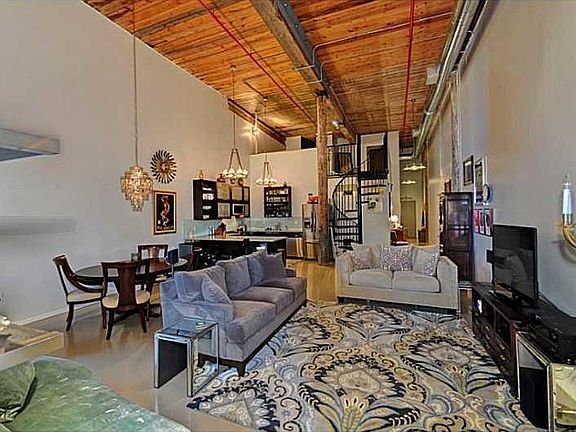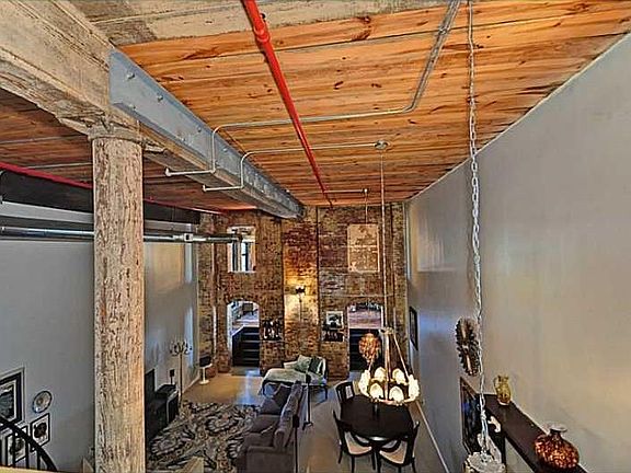 This is truly a one-of-a-kind loft & one of the largest units in the STACKS! Two large bedrooms,2 full baths. Huge living/dining area plus a raised bonus room with a 20 x 20 storage area underneath. Ceiling high windows with East and West views. Concrete floors, open ceiling, brick walls, stained cabinets, granite counter-tops in the open kitchen. Large walk-in laundry room with tons of extra storage. Both bedroom closets have custom closet systems. Designer touches throughout this elegant loft condo. 2 parking spaces. Rooftop deck, fitness room. Community pool.