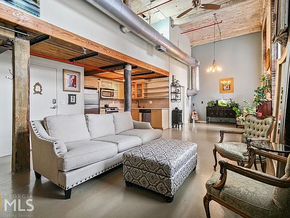 Welcome to this Stunning bi-level loft, also the largest loft in "D" building, in the heart of Cabbagetown and in the sought-after Stacks at the Fulton Cotton Mill. Unmatched living experience in an Atlanta historic building known for retaining its original details of towering ceilings and windows, timber wood columns and beams, and iconic brick smokestacks. This loft features an open and bright floorplan with, living area, kitchen, dining area, and large loft that functions as a bedroom with a walk-in closet and an extra living space or home office. The kitchen features Stainless-Steel appliances, granite countertops, open shelving, new light fixtures, and an open design which is perfect for entertaining. The unit comes with 1 reserved parking space. The community offers high end amenities such is a swimming pool, fitness center, dog run, and courtyards for entertaining. Conveniently located near local coffee shops, bars, restaurants, and only minutes to Atlanta Beltline, Krog Street Market, Ponce City Market, and the Atlanta Dairies.