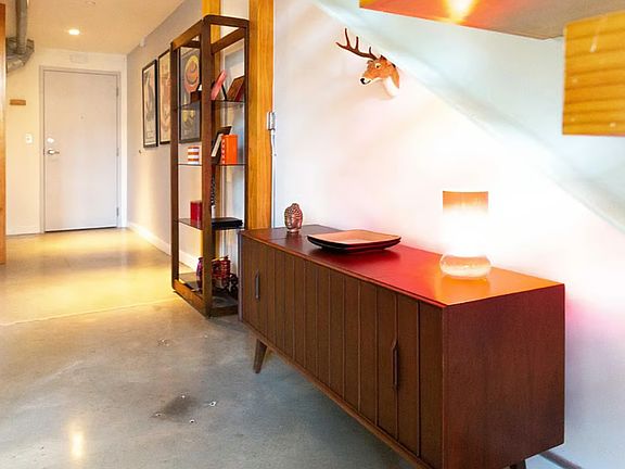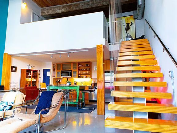 Modern One-Bedroom Loft for Rent Unfurnished Furnished option available price negotiable. This stunning one-bedroom, one-and-a-half-bath loft features soaring 22-foot ceilings, exposed beams, polished concrete floors, and expansive factory windows overlooking peaceful courtyards. A unique floating staircase leads to the lofted bedroom, complete with a walk-in closet and full bathroom. The main level offers an open-concept kitchen, half bath, and in-unit washer and dryer for your convenience. Community amenities include: Resort-style outdoor pool 2,500 sq ft fitness center Outdoor firepits & BBQ stations Gated, covered, and assigned parking The unit is available unfurnished, but can be rented furnished at a negotiable price. The bathroom upstairs is currently being remodeled updated photos will be uploaded soon. Renter is responsible for all the services
