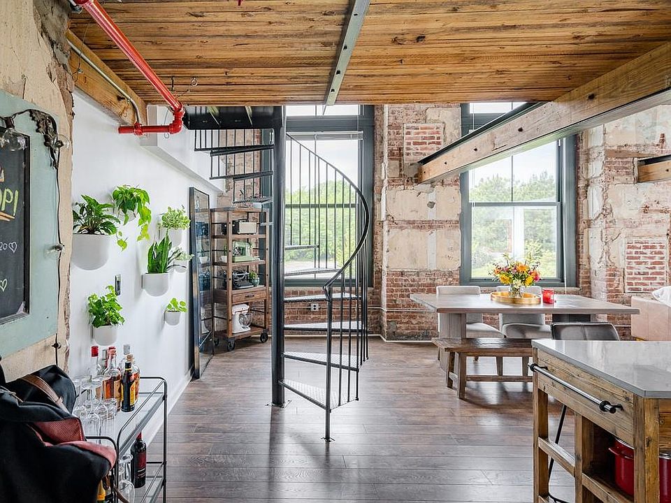THIS is the unit you have been waiting for! Three enormous two story windows flood this loft with light, your plant friends will be forever grateful! Floor to ceiling brick, wide plank hardwood floors, original timber beams and ceilings adds raw, beautiful and historic charm to this one of a kind home. Views from the living room facing west allow for spectacular views of the business district skyline and gorgeous nightly sunsets over historic Oakland Cemetery. The modern bathroom has been renovated and features subway tile walls, penny tile floors and modern fixtures and vanity. Recently renovated kitchen boasts quartz countertops, large ceramic farm sink, floating island, chic open shelving, designer lighting and all new luxury appliances. The gated Stacks community boasts 2 rooftop decks, a pool, full sized gym and 24 hour security. Known for retaining its original details The Stacks is a rare beauty within the Atlanta condo market, Building D is sought after for its peaceful and quiet location within the property. Just a short walk to a variety of eclectic shops, restaurants, parks and of course; the Atlanta Beltline!