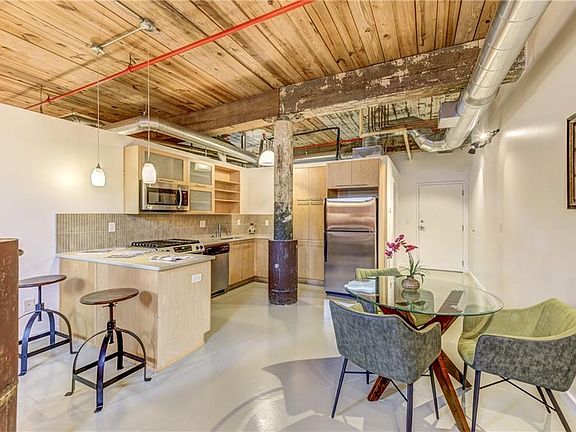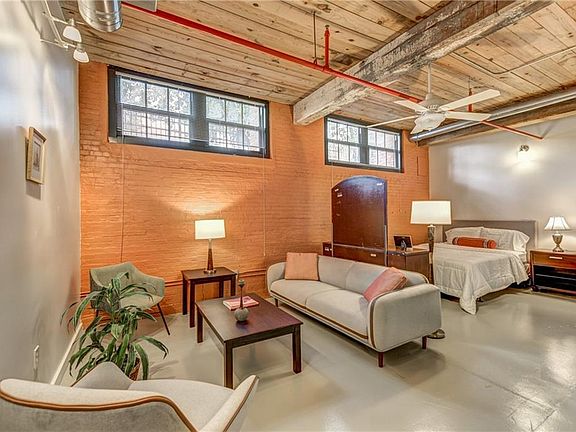Great opportunity in THE STACKS. Seller will contribute 6 months toward HOA. Original architectural features. Large terrace level studio features soaring ceilings, exposed brick, wood beams, concrete floors. Fresh paint. Open plan w/updated kitchen, stainless appliances & b'fast bar. Large walk-in closet.Spacious storage rm/laundry rm. Assigned parking space. Spectacular views from roof top terrace. Historic gated community w/iconic Stacks & Water Tower retains its 1800's character. Enjoy gorgeous pool, b'ful gardens, park, top notch fitness center, & grilling areas. Enjoy shaded walking paths throughout pet friendly Stacks. Plenty of stations for bicycles. Walk The Beltline or Bike to Ponce City Market, Old Fourth Ward, Krog Street Market and enjoy the best of Cabbagetown. This historic site is seen in many current movies filmed in Atlanta. Unit is pristine with freshly painted concrete floors and walls throughout. Leasing Permit available for this unit.