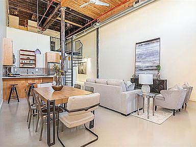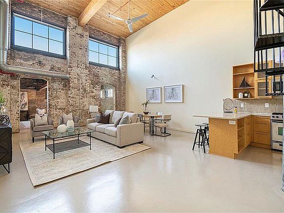 Penthouse Loft with Skylights and City Views! This Loft is one of the largest in the Stacks, at 2100sq ft., with a 21 ft. ceiling height! Gallery entry foyer leads to bright, spacious, and versatile great room with massive windows, and modern kitchen. This Loft has 2 large bedrooms, and 2 full bathrooms. Brick archways lead to 2 extra bonus rooms (Could be used as office/media room/extra bedrooms). Utility room has front loading washer/dryer (included) and extra storage space. 2 assigned covered parking spaces are included. Amenities include gym, resort style pool, rooftop deck, gated entry with Security Guards onsite. Walk to Krog Street Market, the Beltline, and Carroll St. restaurants. Unit is currently available. Contact us to schedule a tour. Security Deposit required to secure unit First and Last Months Rent Due at Lease signing