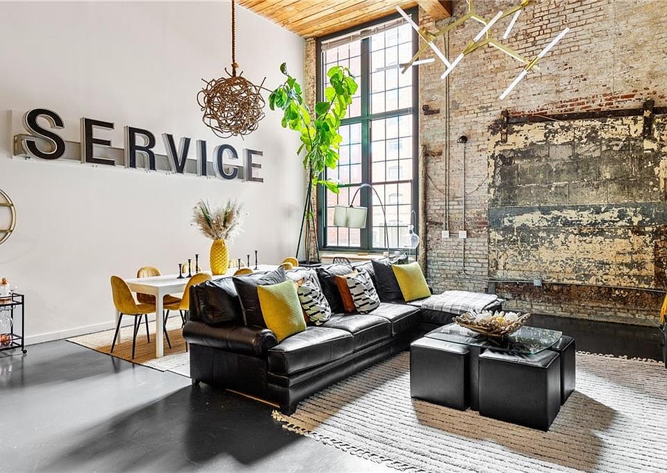 This is loft living at its best with this corner unit in Building E. Featuring over 20-foot ceilings, designer light fixtures, beautifully finished concrete floors, tons of natural light, and exposed brick walls; this unit is a MUST-SEE! The open concept offers a perfect sightline to the living and dining area from the kitchen. A spiral staircase leads you to the lofted secondary bedroom with hardwood floors, walk-in closet, and bathroom. The upstairs bathroom features a double vanity with lots of storage and a large shower. The laundry has a floor-to-ceiling metal storage rack, giving this space an incredible amount of storage. The sellers are interested in selling the unit completely furnished as well. The Stacks is a secure, gated community with great amenities. A fitness center, patio entertainment area, large pool, dog run, package lockers, and the Bldg E rooftop has a great view of the Atlanta skyline! Location is perfect for walking to retail, restaurants, Carroll Street, Edgewood, Oakland Cemetery, Marta, Fetch, The Larkin, King Historic Site, Krog Street Market, The Beltline, and so much more. You can also inquire about fully furnished option at $4000/mth.