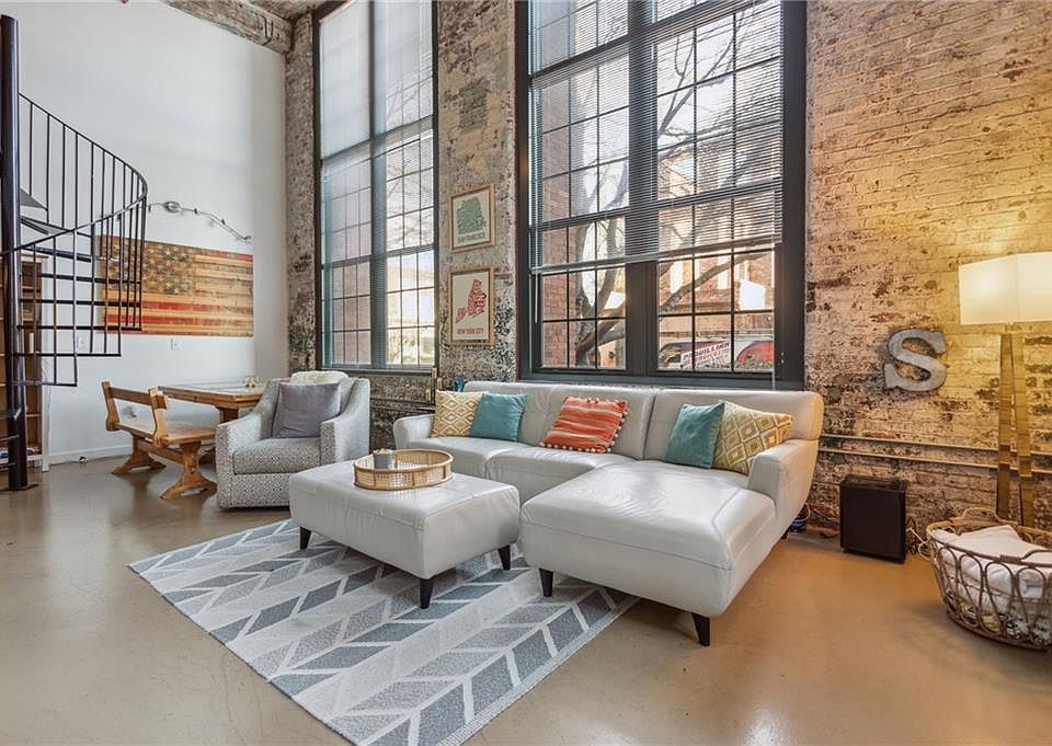 Corner Unit/end 2 bedroom multilevel loft with 25' ceilings, ground floor with concret floors on main level. Enjoy a great pool, modern fitness center, controlled access, & assigned parking. Community rooftop deck and on site security. Introducing an exquisite 2-bedroom haven nestled within the historic Cotton Mill Lofts, affectionately known as The Stacks. This spacious unit boasts soaring ceilings that elevate your living experience, complemented by built-in bookshelves that add character and functionality. A convenient full laundry room, and two full bathrooms—a rare gem within The Stacks community. Prepare culinary delights in a fully-equipped kitchen with sleek stainless steel appliances and a gas cooking range. The roommate floor plan offers privacy and convenience with bedrooms located both upstairs and downstairs, while the open loft living area invites relaxation and entertainment. Nestled within a gated community in vibrant Cabbagetown, this residence offers an array of amenities to enhance your lifestyle. Dive into relaxation at the pool, maintain your fitness routine at the on-site gym, or let your furry friend roam free at the dog park. Ascend to the rooftop deck for breathtaking views and memorable gatherings, and rest easy with secured parking. Embrace the convenience of city living with proximity to the Beltline and major highways I-20 and I-75/85, seamlessly connecting you to Atlanta's pulse. Explore eclectic dining and shopping options at nearby destinations such as the Atlanta Beltline, Krog Street Market, Inman Park, and Ponce City Market, all just steps away.