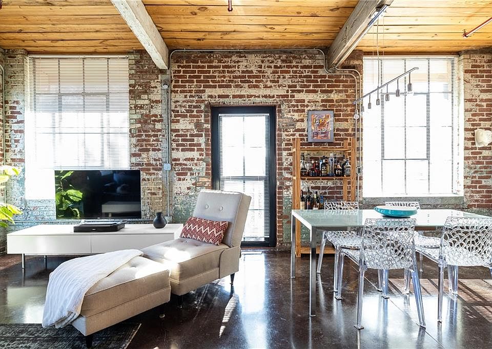 Welcome Home. the historic Stacks Cotton Mill located in Cabbagetown - the most authentic loft community in Atlanta. Upon entering the secured gates and attended guardhouse, you see breathtaking views of architecture and some of the city’s oldest landmarked buildings with multiple greenspaces – an rare intown commodity. Rarely available, the F building units are unique and highly desired. As you arrive at the striking cream color brick two-story building, you begin to recognize how special F204 is. The corner loft is one of only three units within the private entrance. with no units above or beside it, making it one of the quietest in The Stacks. There are six floor-to-ceiling windows which flood the space with natural light, you notice unique features not found in other space, a beautiful shining concrete floor, beamed wood ceiling, open space - comfortable, inviting and warm. There are stainless steel appliances, an abundance of storage in a custom closet/laundry room and new lighting throughout.The bathroom is spacious, private and accessible. The intimate loft overlooks a lovely French-inspired courtyard; close to the pool, fitness center and enclosed parking makes it ideal. World-class amenities include a resort style Olympic-size pool, state-of-the-art gym, two rooftop decks with city views, gated dog runs, Google Fiber and electric charging stations. Cabbagetown -- a tight-knit community -- offers the best of Atlanta with over 30 restaurants, coffee shops, farmers markets and shopping all within strolling distance. Experience the Beltline (Eastside Trail), Krog Street Market, Ponce City Market, Inman Park, Atlanta Dairies, Grant Park, historic Oakland Cemetery, national historic sites, Fetch Dog Park and too many others to list!