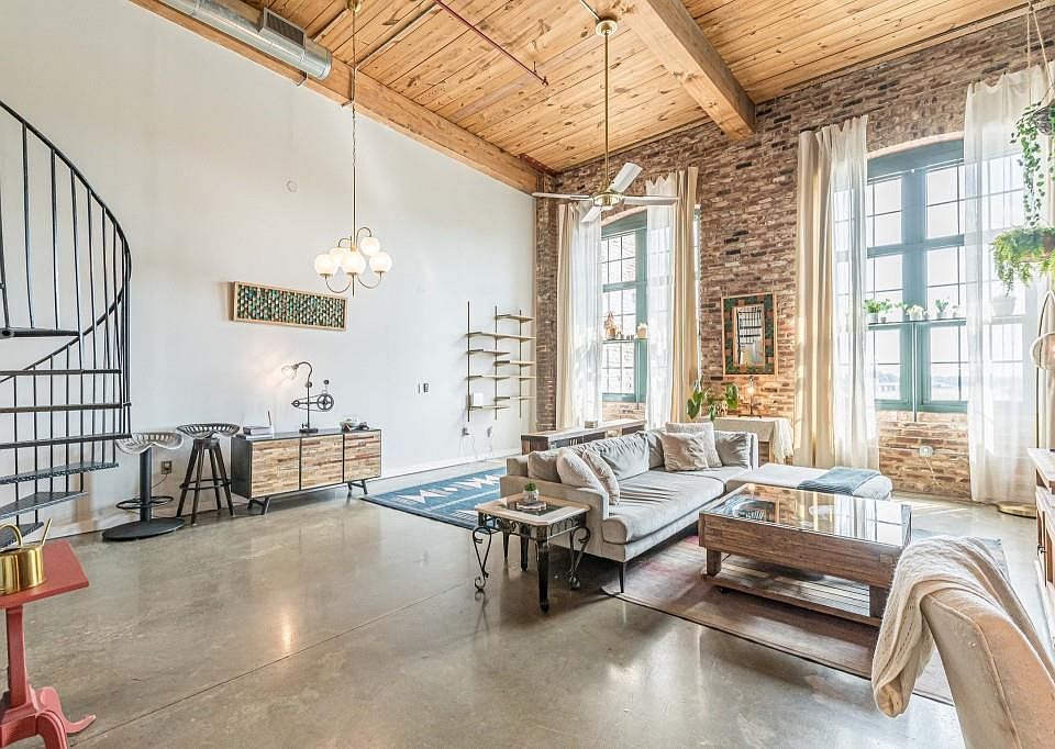 Experience the epitome of industrial-chic living in this stunning 1.5-bedroom, 1.5-bath top-floor loft at The Stacks, Atlanta's premier loft community in the heart of historic Cabbagetown. Yes 1.5 bedrooms. In addition to the spacious primary suite upstairs, this unit features a rare and versatile "half-bedroom" on the main level. Currently outfitted with a pull-out bed and located just steps from the half bath, it's perfect for overnight guests, a home office, or a cozy reading nook. Originally the Fulton Bag and Cotton Mill, The Stacks blends historic character with modern luxury. Inside, you'll find soaring 14-foot ceilings, oversized windows that flood the space with natural light, and a sleek, upgraded kitchen featuring striking quartzite countertops. A stylish metal spiral staircase leads to the private upstairs suite with en-suite bath. Here's a fun bonus: you can connect this unit with "The Tower" next door (unit H523) if you buy both! The gated community offers 24/7 security, a deeded and reserved parking space, rooftop decks, dog parks and runs, a fitness center, and one of the most unique pools in the city set among the dramatic ruins of the original mill. Loft living doesn't get better than this. Furniture is negotiable.