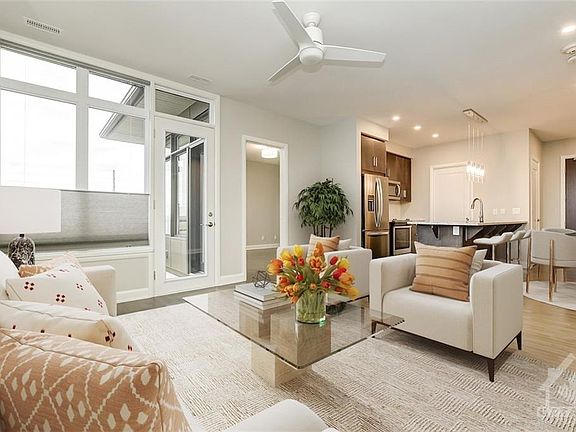 The Elements at Richardson Ridge: Luxury maintenance free living located in the heart of Kanata Lakes. Premium top floor corner unit complete with 2 bed, 2 bath, 2 parking spots, and a den! Superb style, designer decor & spacious open concept layout, whether it's for everyday living or entertaining-this home is ABSOLUTELY FABULOUS! Modern sophisticated kitchen, quartz counters, high end appliances, and ample space. Primary bedroom features an ensuite bath, soaring windows...a wonderful way to begin and end your day. Easy spacious layout, a good sized secondary bedroom and an office space complete this home. Upgraded, elegant carefree living with an abundance of natural light, beautiful views from the balcony. Underground heated parking, surface parking and a locker included.