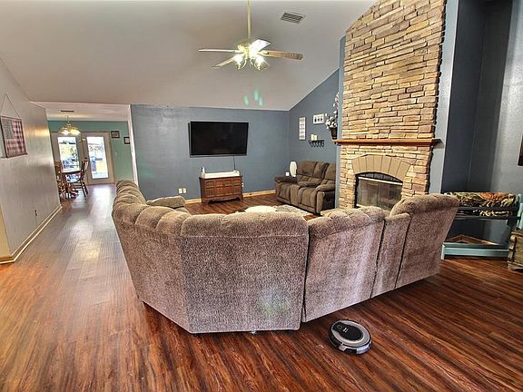 Don't let this one get away! 4 bedrooms, 3 full bathrooms, over 2700 square feet, metal roof, a huge living room with wood burning fireplace and vaulted ceilings! The kitchen has a brand new stove, dishwasher, and refrigerator as well as custom cabinets with pot and pan drawers, lazy susans, and fold out pantry shelves. The huge master bedroom has french doors leading to the large master bath with jacuzzi tub, separate shower, double vanities and walk-in closets. Walk out the back french doors to the large deck that is great for grilling and watching the kids play on the over acre and half wooded lot. It has a wired storage building that would make a great workshop. There is also a side porch that comes directly into a full bath connected to the laundry room! And don't miss the huge floored attic that could be finished for a bonus room!