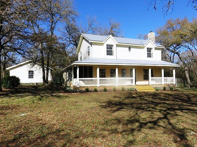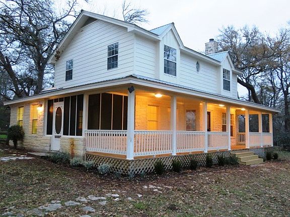 Home just completely repainted inside and out, carpet just installed, wood floor just refinished. Beautiful two story rock and hardiplank home with covered front porch, rock fireplace in the living room, wood floor in the formal dining. Study and family room upstairs. Additional guest house with approx 500 sq'. Very secluded setting just 4 miles outside of Elgin.