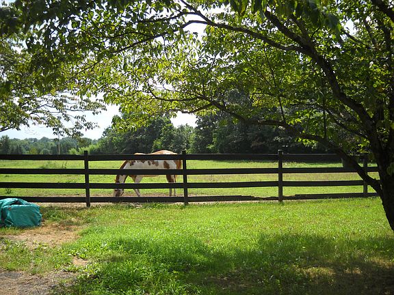 Set back for privacy, this 3 bedroom 2 1/2 bath Colonial home on 4.4 acres, features a fully fenced back yard with inground pool(new liner this year), full basement with walk out. Paddocks to the front and side, run in sheds and a 3 stall barn to complete your affordable, adorable farm. Bring your horses, chickens, pigs, cats and dogs to a little bit of heaven. Just a stone throw away from the freedom trail. Owner is relocating, so please make all offers known. House needs up dating and a little TLC.