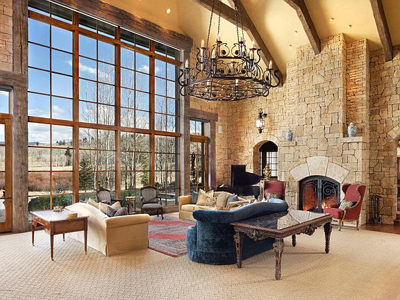 The perfect place to gather the whole family! Private Owl Creek Estate surrounded by an elk migration corridor where you can view elk grazing within a few hundred feet. This European style home consists of 18,000 square feet of livable space including 8 bedrooms, 6 full and 2 half baths. Amenities include a 60-foot negative edge pool with 12-foot waterfall, covered outdoor kitchen with wood burning fireplace and seating area, outdoor fire pit, outdoor spa, and two ponds. Interior amenities include a temperature controlled wine cellar, master bedroom on entry level with its own private wing inclusive of a gym and steam room. On the second level there are 6 en-suite guest rooms and two en-suite bunk rooms equipped with a full kitchen, living room and separate entrance.