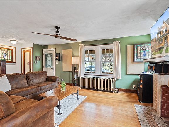 Welcome to this charming 3-Bedroom (with a 4th if wanted) Brick Home in appealing Ross Twp. When it comes to curb appeal, this charming all-brick home will capture you from the moment you arrive. The covered front porch is amazing for hosting gatherings or just relaxing during the evening. Roof 2022 and Heating system 2021. The main level boasts Stunning Hardwood floors, a beautiful stone fireplace, Spacious Dining room and multiple Stained-Glass windows. The Updated kitchen has Stainless Steel appliances and beautiful Butcher Block Countertops. The second level hosts 3 Bedrooms and a Full Bath with ample closet space and Hardwood Floors. The third level is Fantastic for a fourth Bedroom, Playroom, or storage. The fenced in Backyard is perfect for Barbecues and a Firepit that completes the ambience of the space. This location is perfect for travel with multiple highways nearby, shopping at Ross Park Mall and multiple restaurants.