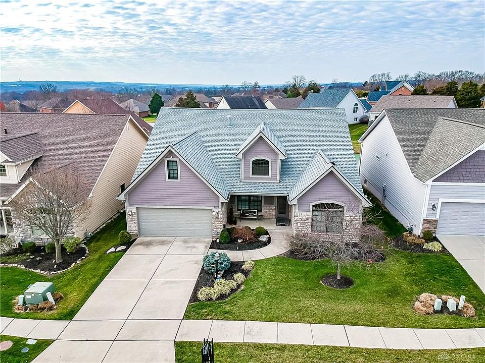 Beautiful Simms patio home located in Springboro's Stoneridge North Hills Subdivision. Quality craftsmanship from top to bottom... features an open concept living room and kitchen, large first floor master suite with custom walk in shower, and a view that overlooks the pond. The large kitchen boasts high end appliances as well as corian countertops. The vaulted ceiling in the living room accentuates the gas fireplace, skylights and view. The large office is framed with beautiful French Doors. Upstairs is a 3rd bedroom with large walk in closet and attached bonus room. A large enclosed patio overlooks the pond and gazebo. Lots of upgrades including 9 foot ceilings and crown molding.
