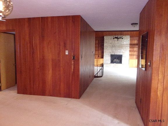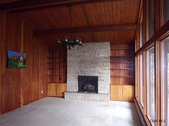 Deja vu - Relisted; recent purchaser is not moving to Somerset. This 3 bedroom ranch home is nestled in the woods on 4.1 acres just 3 miles from Somerset. Features: One story living with lots of real cherry paneling, 3 bedrooms, 1.5 baths, formal dining room, office, bright living room with fireplace, lower level family room with fireplace, attached 2 car garage and a separate concrete block shop. This is a very private setting with a paved driveway entrance.