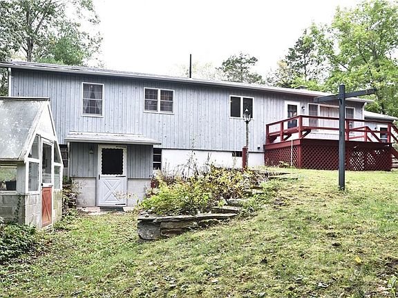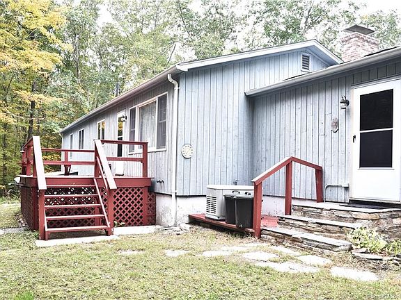 9.05 Acre Land Parcel several shed outbuildings One Level Living Wood Ranch Style Home With A Gray Rock Fireplace,, full basement and deck area All On A Scenic Road. Enough room For Furry Friends and Farm Animals. Showings by Appointment. The property has a free lot split possibility per the town regulations and a recent survey has been engineered for a rear building lot with minimal requirements. A Very Large Barn offers many possibilities; Workshop, Hobbies, Car Space and loft. There are Three Bedrooms and a bathroom that features A Separate Shower as well as a tub shower. Laundry location of the home is the converted attached garage and a leased propane tank serves the generator. A few changes that could bring it In The Future from the old time era and A Diamond In The Rough Value.