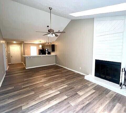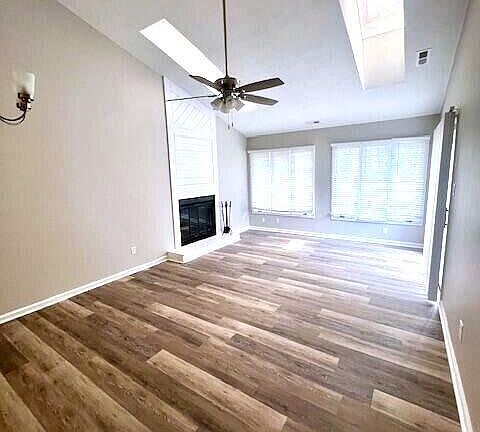 Newly renovated two bedroom, two bath condo in the gated community of Woodlake Country Club! New Luxury Vinyl flooring, new bathroom vanities, quartz countertops, new light fixtures, paint, plumbing and brand new stainless steel appliances! Open floorplan with vaulted ceiling in the living room with a fireplace! Lots of windows throughout and wonderful light! Living room and primary bedroom overlook the canal with a patio, walkway to the canal and a dock! Washer and dryer are included! Ready for immediate occupancy! Owners will consider a pet with a one time pet fee.