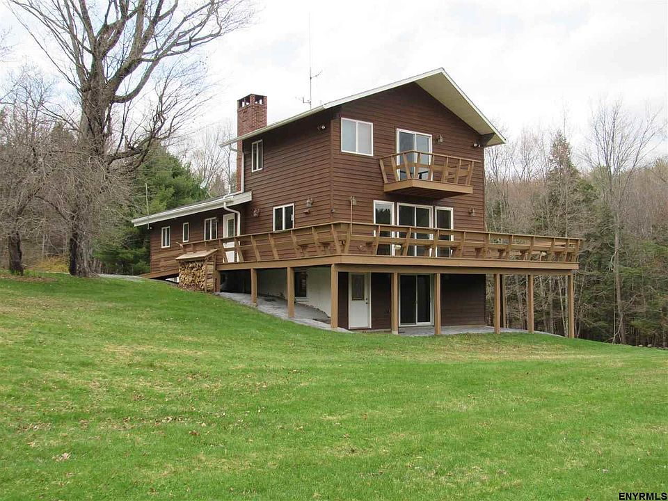 204.5 acre Catskill country compound. Completely reconstructed and expanded 5 bedroom, 3 bath home in pristine condition with an additional 3 bedroom, 1 bath living space above the garage. Beautiful large kitchen with lots of natural light. Second floor master suite with balcony overlooking the Catskills. Gorgeous southern views, with a stocked pond, stream, pasture and tillable fields, and UTV trails running through the wooded acreage.