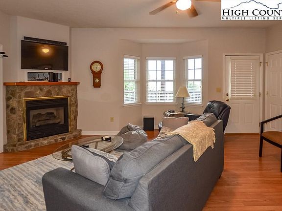 Easy one level living in Blowing Rock! Move-in ready, this condo includes two bedrooms, two full baths, laminate wood flooring throughout common areas & bedrooms, and a one car garage in the basement! Open floorplan in the kitchen and living areas, complete with a stone fireplace and deck access. Enjoy the views and cool breezes from the large covered back deck. This condo is conveniently located between Blowing Rock and Boone, and just around the corner from Appalachian Ski Mountain. Only minutes to the Blue Ridge Parkway, downtown Blowing Rock and Tweetsie Railroad. Short and long-term rentals permitted. Call to preview today!