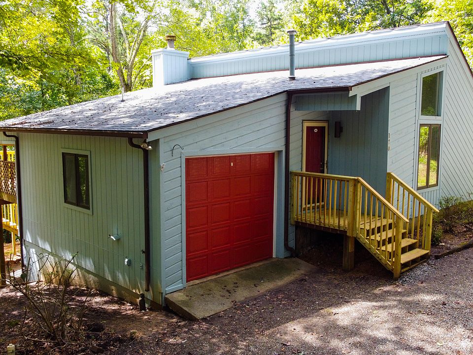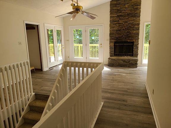 Ready for you! This contemporary home had a complete make over! See for yourself! Exterior: new roof, paint, 8x35 back deck, garage door (12x23 attached garage), front door and porch, and 3 French doors (2 entry and 1 lower). Interior: luxury vinyl floors and paint. Enter the front door to an open family room with cathedral ceiling and floor to ceiling rock fire place. Enjoy your privacy from the entry deck or your lower patio. Your palette is here, it's up to your where if goes from there!