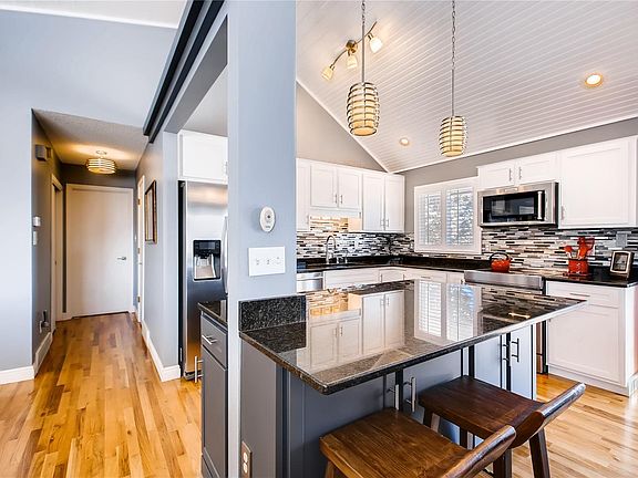 With an iconic view of Pike's Peak from the new extended Trex deck and stone pillars, this custom remodeled home is your chance to own in Gleneagle Estates. The new tongue and grove ceiling enhances this light and bright home and open concept floor plan. The remodeled high-end, on-trend kitchen has new two-tone white and gray shaker cabinets, Kitchen Aid induction range/stove and microwave, the quietest Bosch dishwasher, and is completed with a new stainless refrigerator. You will find a master suite of your dreams to relax in with remodeled 5 piece bath, new see-thru gas fireplace, redesigned walk-in closet with beautiful barn door, and new carpet. All windows have been replaced except for one, as have the the front door, back door and entry door to the garage. The lower level features a walk out covered patio, newer carpet and updated flooring. Rounding out all the beautiful updates is the professionally landscaped outdoor spaces with fireplace that stays with the home.