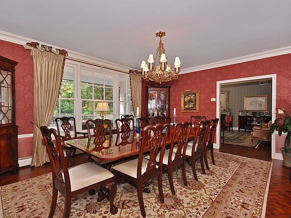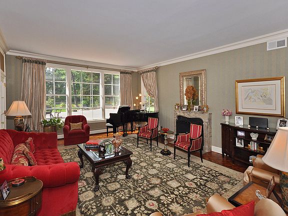 Elegant custom 5BR home nestled on 1.45 acres of meticulously maintained grounds.The minute you step onto the mahogany floored foyer you are greeted by a beautiful LR w/FP & windows overlooking park-like yard. Sweeping staircase off foyer w/cherry stairs & 2nd staircase off kitchen. Kitchen has center island w/built in microwave & warming drawer,6 burner Viking oven, Miele dishwasher, wine refrig w/drink drawers. 3 fireplaces, sep room off DR & kitchen w/bar in closet perfect for entertaining, walnut parquet floors and hw. 5th BR w/FP, full bath & bar in closet currently used for office/library but can easily be converted back to bedroom. Private well for exterior water, 4yr old Lamarite roof, brand new 20kw Generac generator,Bose surround sound & exterior speakers, crown molding, dog run, and more.